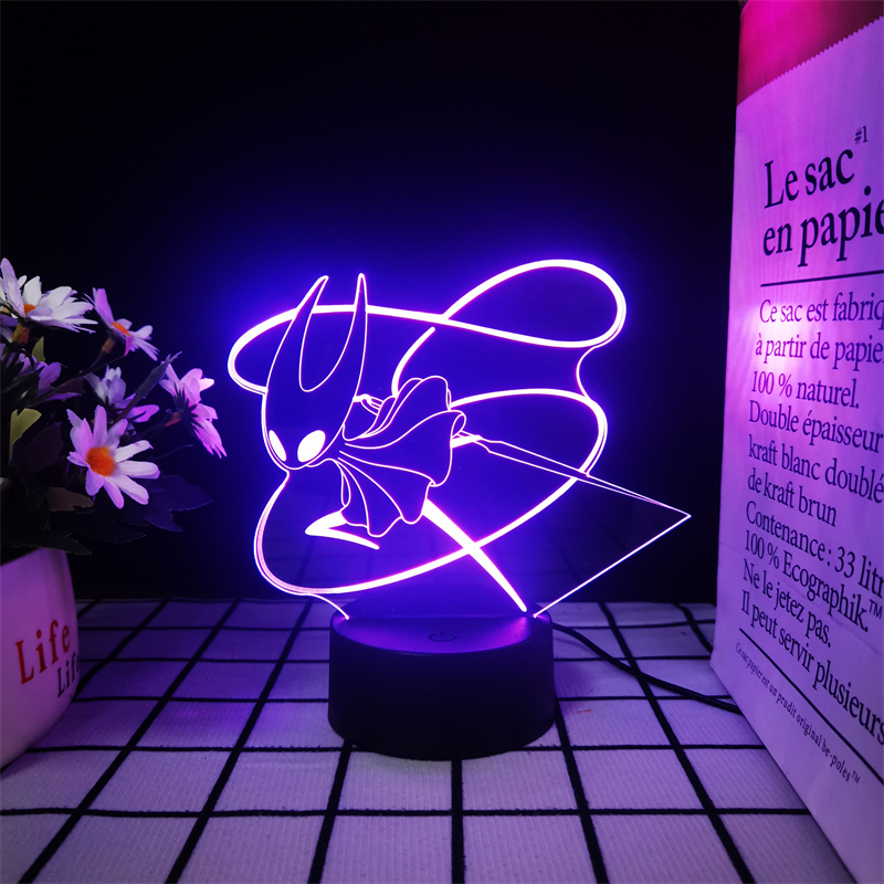 Hollow Knight LED Night Light - Little Knight & Hornet Design with 7-Color Touch Control & USB/Battery Dual Power